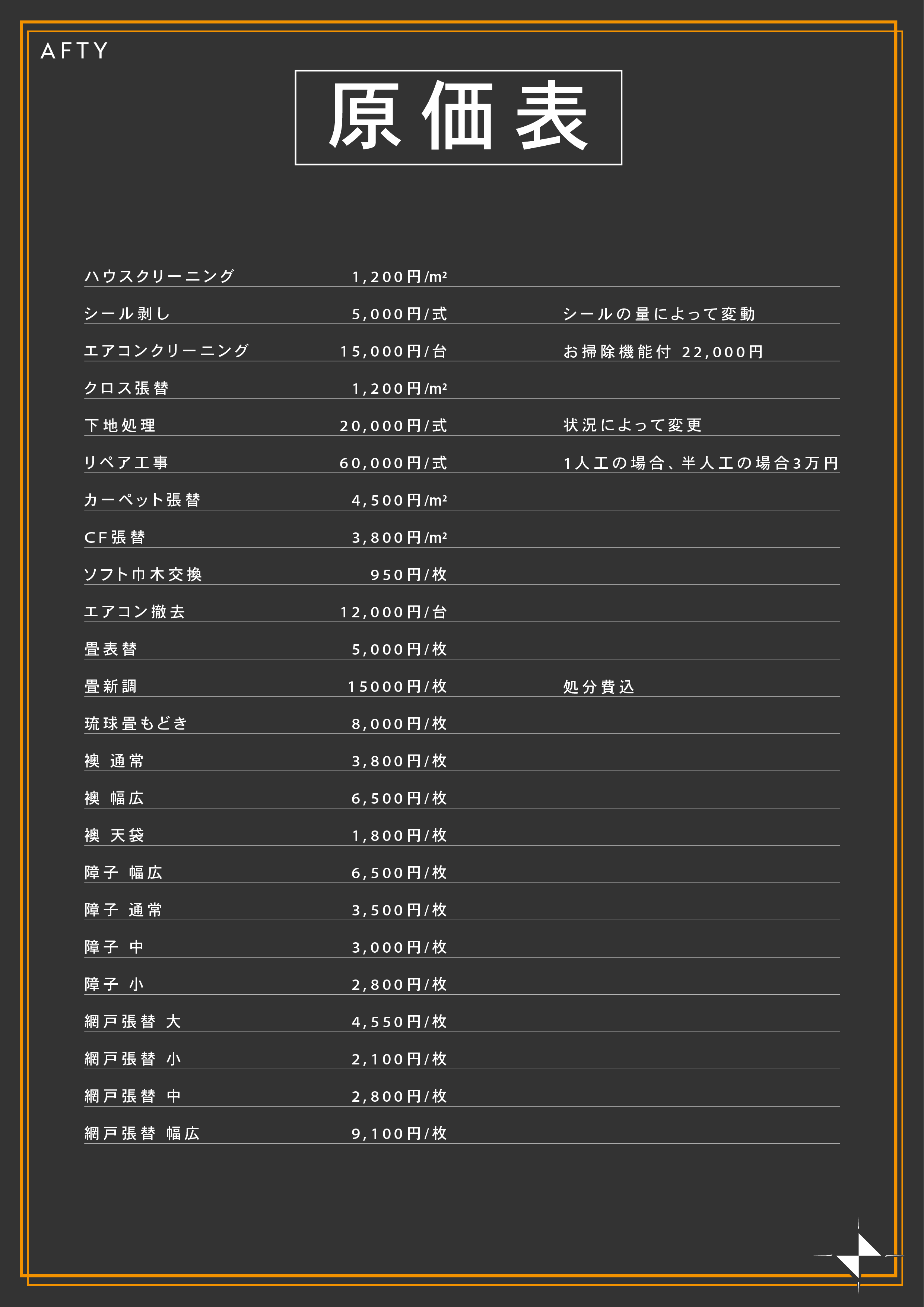 AFTYの原価表
