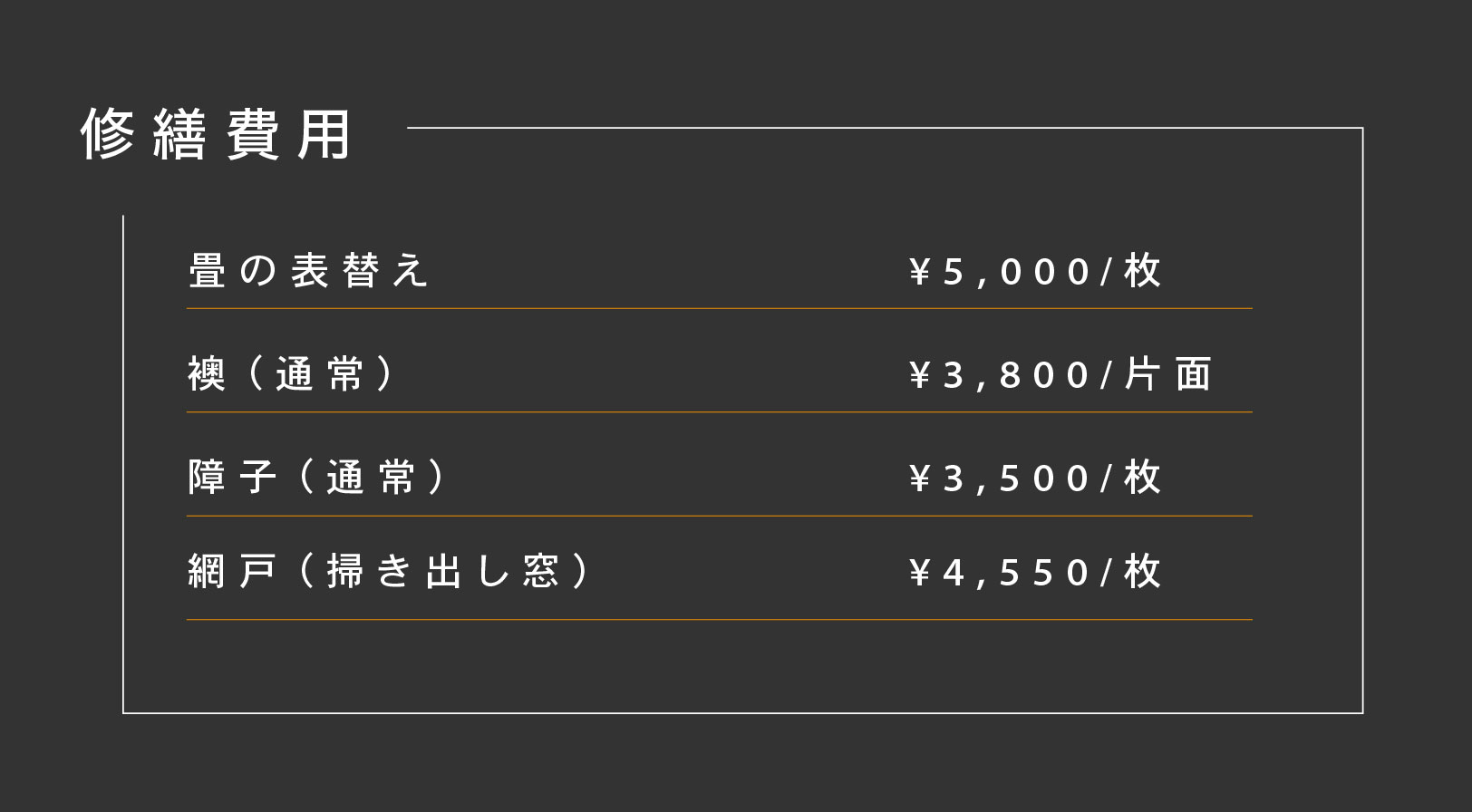 和室に関してはクリーニングと同じように初回だけで次回からは借主の費用負担となります。