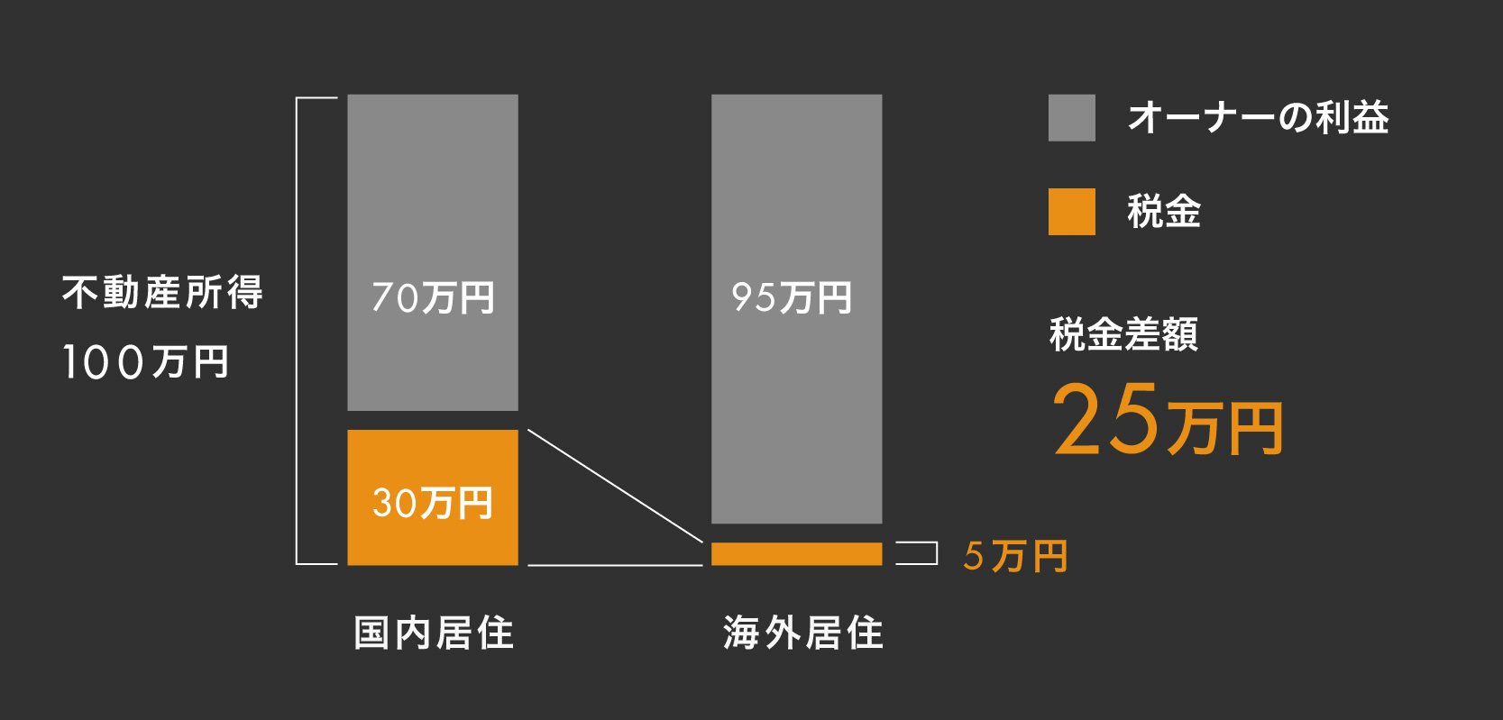 国内だと30万円支払う税金が海外にいるだけで5万円です。
