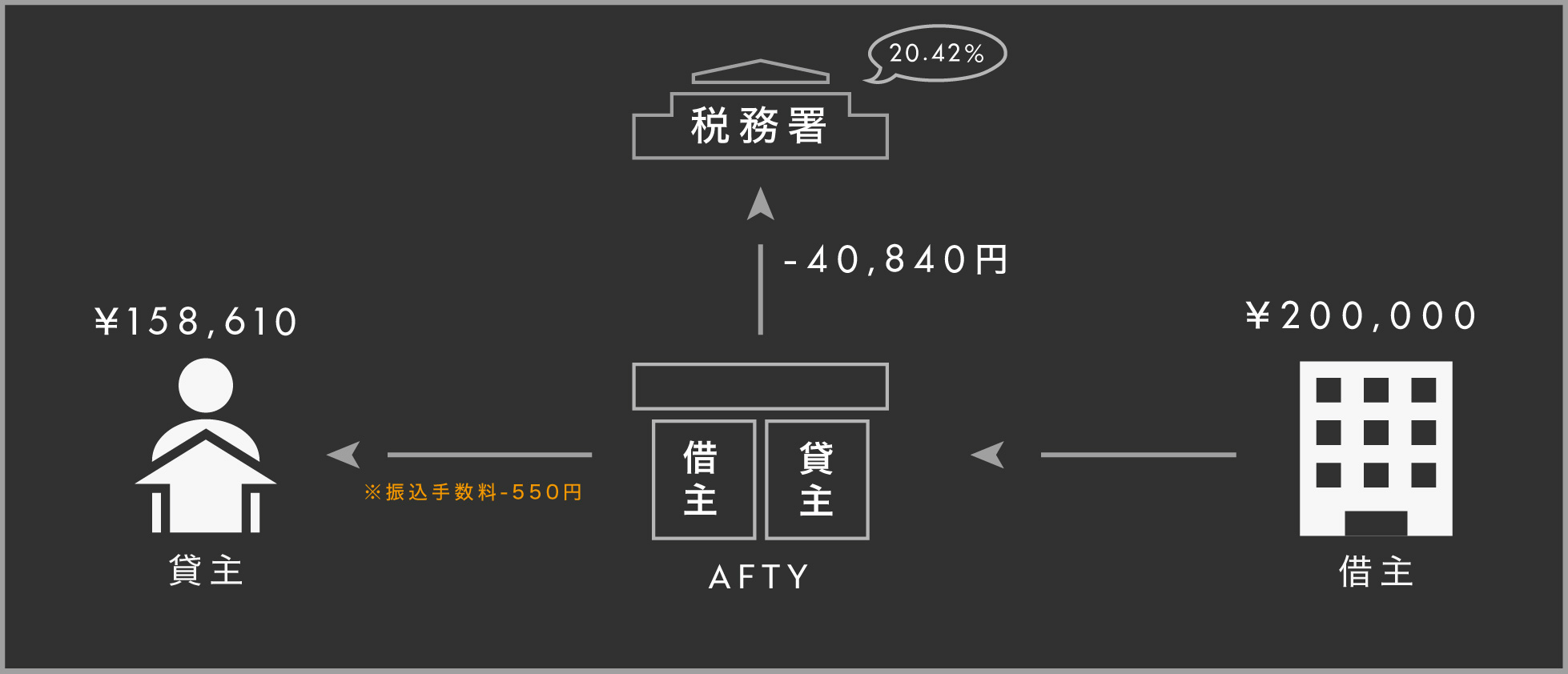 例えば非居住者オーナーが所有する20万円の家を借りた法人は16万円をオーナーさんに支払って、4万円は銀行などで納税手続きを行わなくてはいけません。