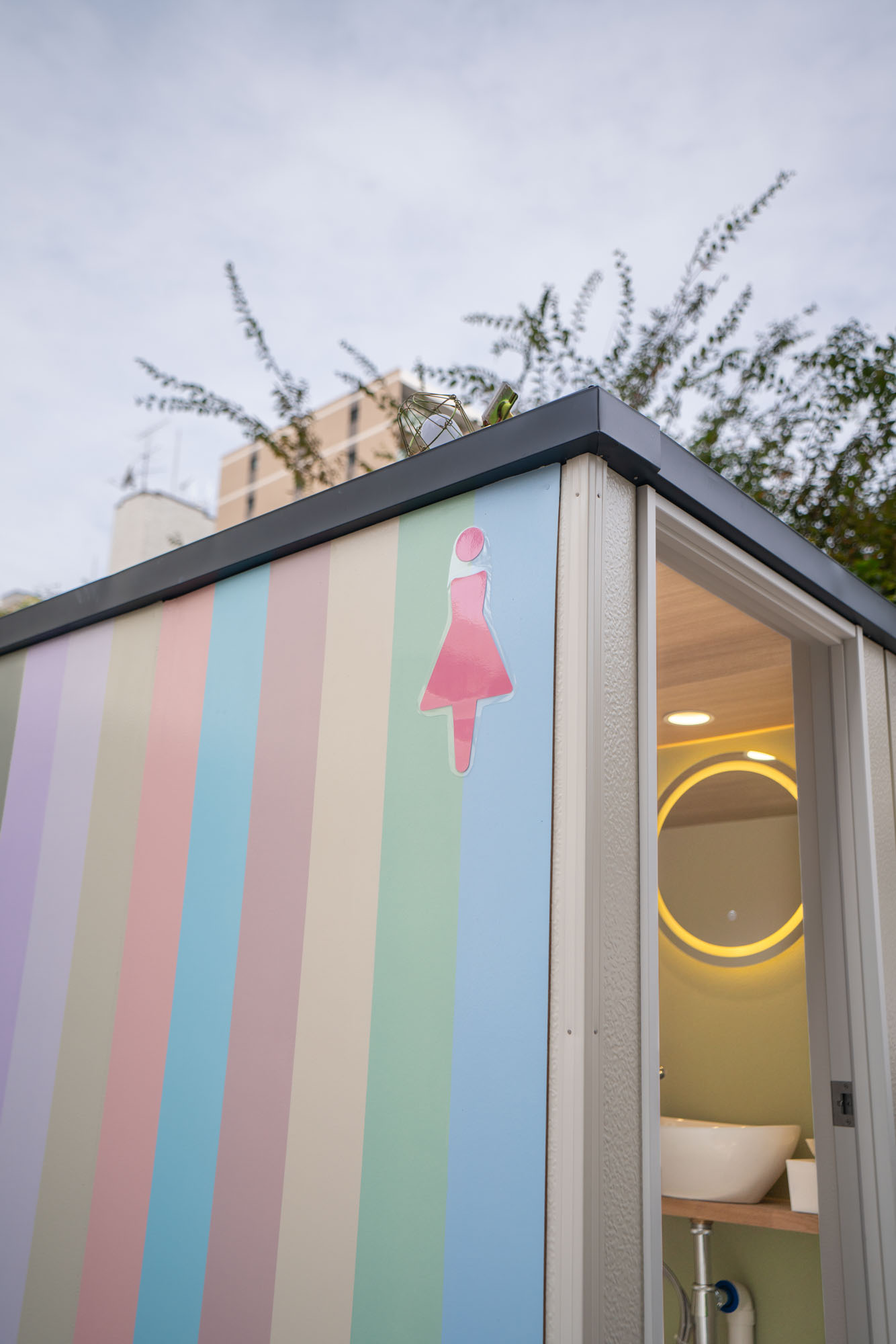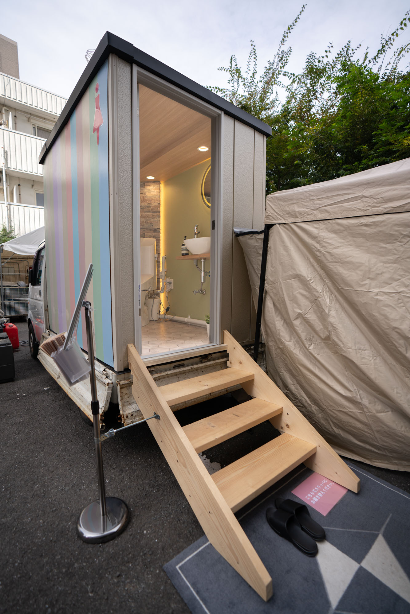 “女性向けにフェスティバルなどでもトイレを気にせず過ごしてほしい”ことを目的に考案。プレミアムTなど、独創的ななリノベーションを手がけてきたノウハウを活かし、ラグジュアリーなトイレ空間の作成を目指しました。