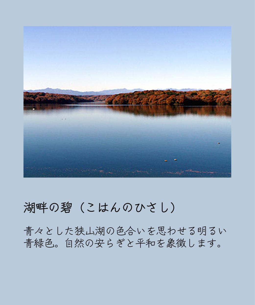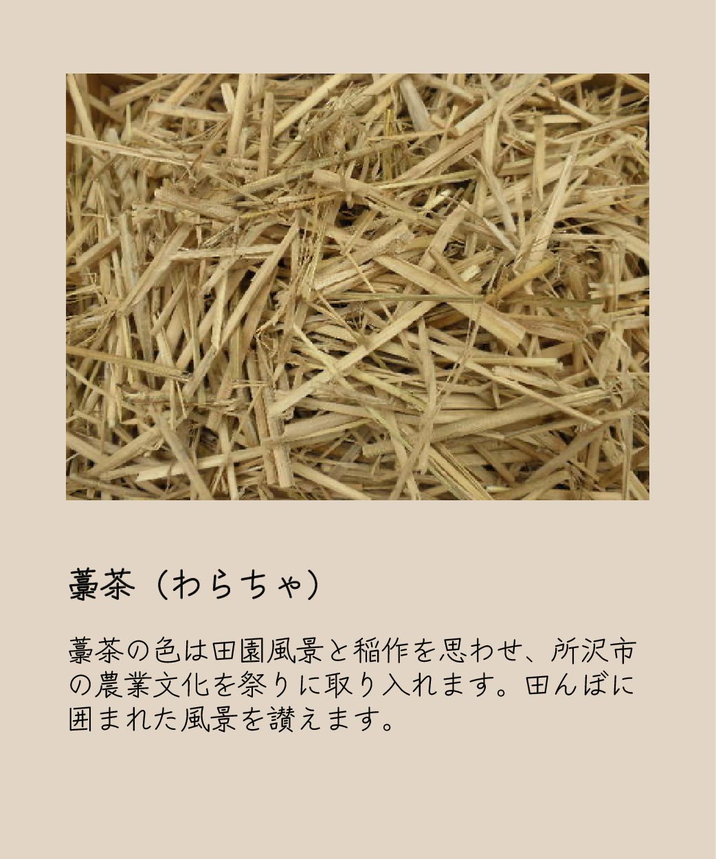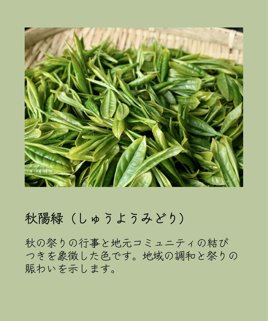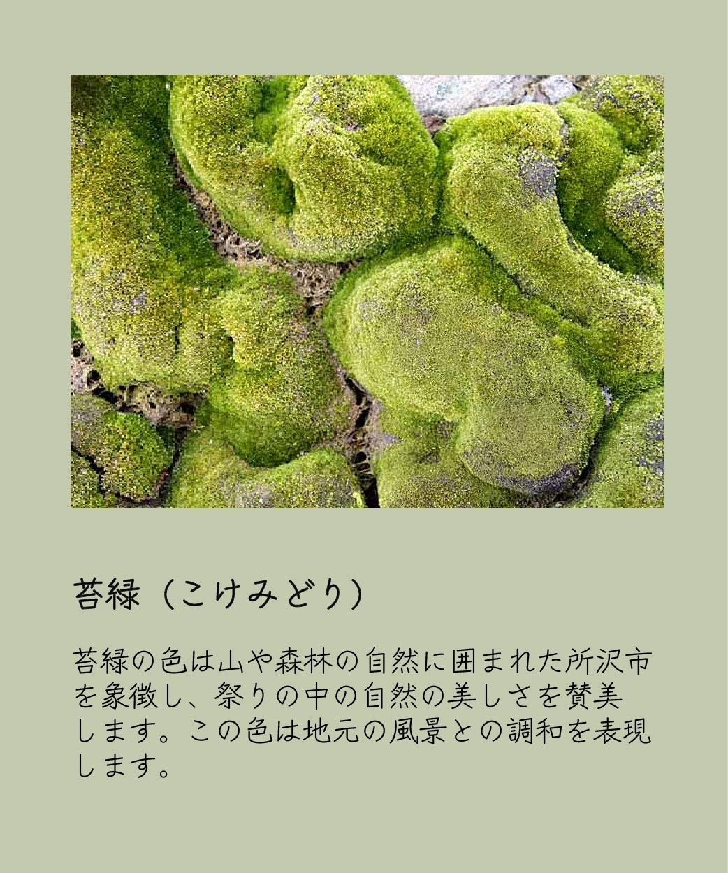 ところざわ祭りに出展される山車全12基に着想を得て、所沢市の自然豊かな環境要素から選色をしました。