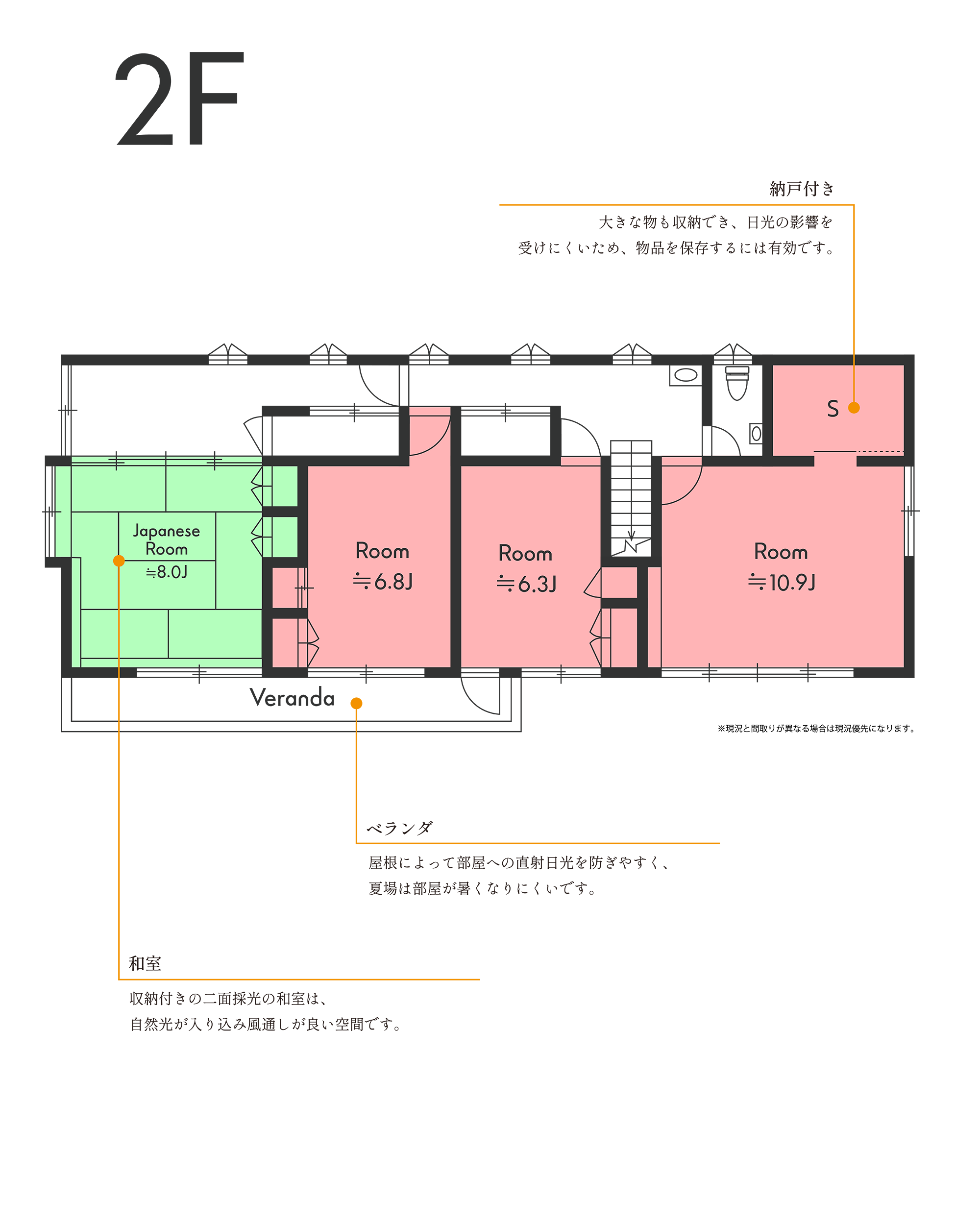 全ての部屋が南向きで、日当たりが良好な間取りです。