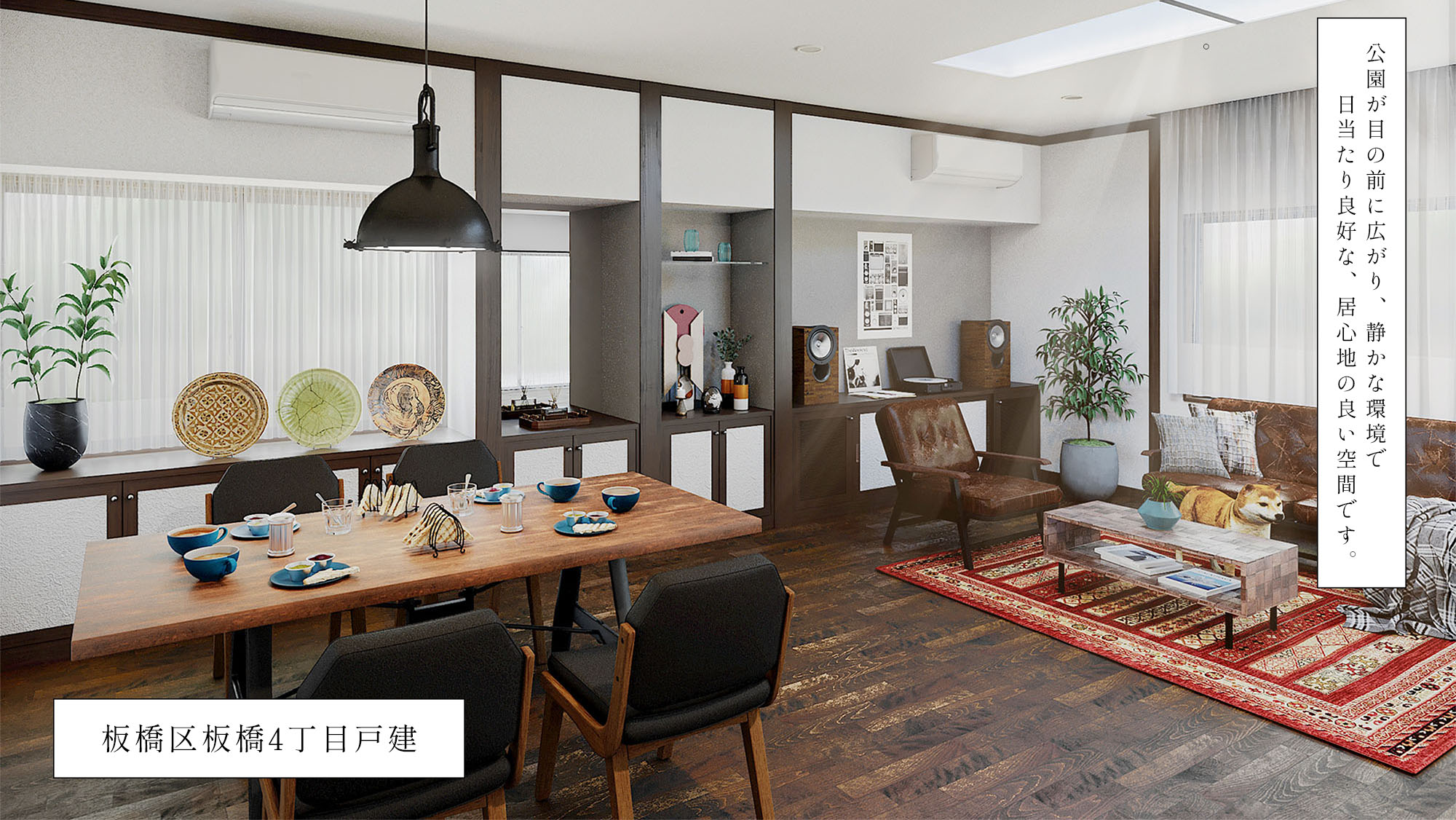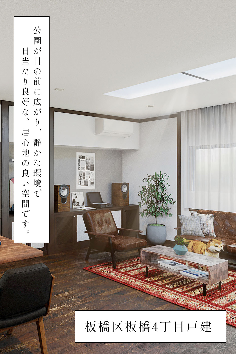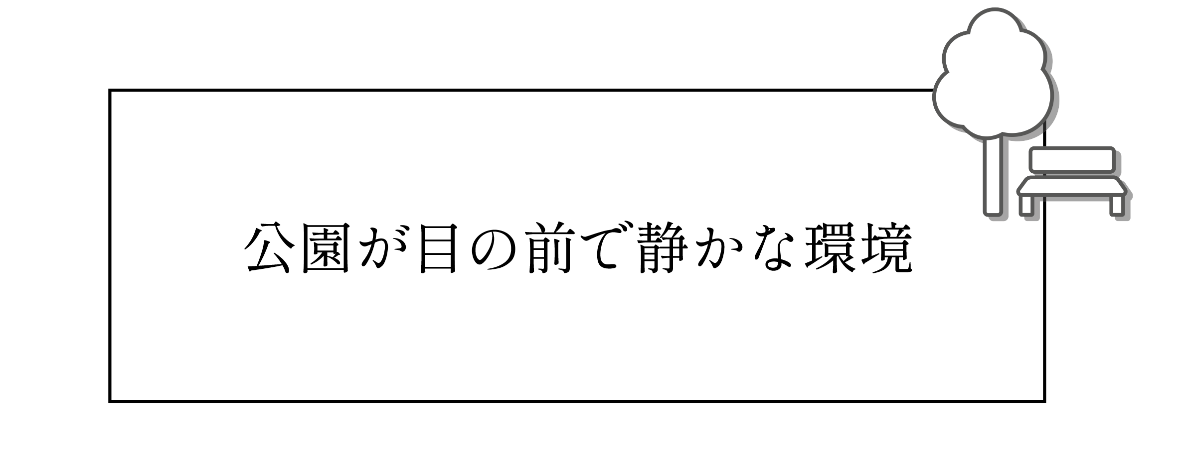 公園が目の前で静かな環境、南側に面しており日当たり良好な物件。